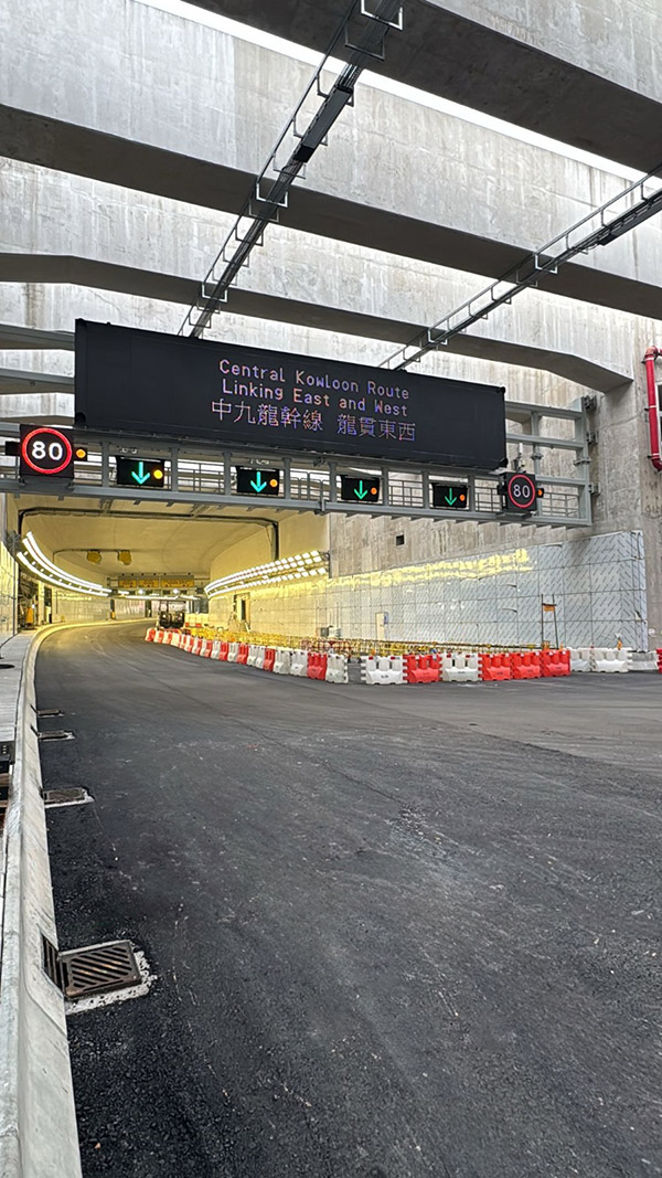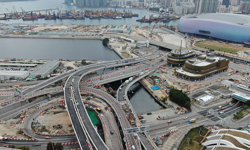 Central Kowloon Route (“CKR”) is a dual three-lane carriageway with a total length of 4.7km, linking Yau Ma Tei Interchange of West Kowloon with Kai Tak Development Area and road network of Kowloon Bay, forming a trunk road across central Kowloon. The CKR is an alternative express route, alleviating the traffic congestion of the existing major east-west transport corridors in central Kowloon. By constructing CKR, the surrounding environment will be improved, with greening and landscaping elements, re-provision of public facilities, and conservation of cultural heritage. The construction works of the CKR are entering the final stage and are expected to be completed by the end of this year.